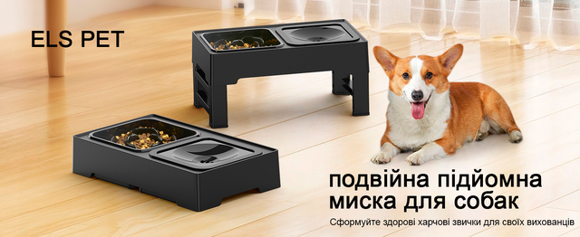 Кожен власник собаки намагається забезпечити своєму вихованцю максимально комфортні умови, щоб чотирилапий друг був здоровий, веселий і задоволений життям. Подвійна миска для собак ELS PET - це ідеальний вибір для комфортного годування Вашого улюбленця. Підставка виготовлена з харчового АБС-пластику, вона безпечна, нешкідлива і має високу міцність. Миски для собак об'ємом 1,6л можуть задовольнити щоденний раціон домашніх тварин їх потреби у воді та їжі, можна легко мити в посудомийній машині, що зручніше для очищення.