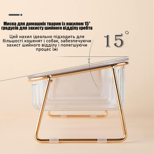 Особливою перевагою є 15 градусна нахилена підставка, яка захищає шийний відділ від перевантаження Вашого улюбленця. Міцна залізна конструкція забезпечує стійкість миски і запобігає її тремтінню. Цікавий та миленький дизайн миски доповнює всі переваги цього продукту. Ваші домашні улюбленці будуть задоволені своїм новим посудом!