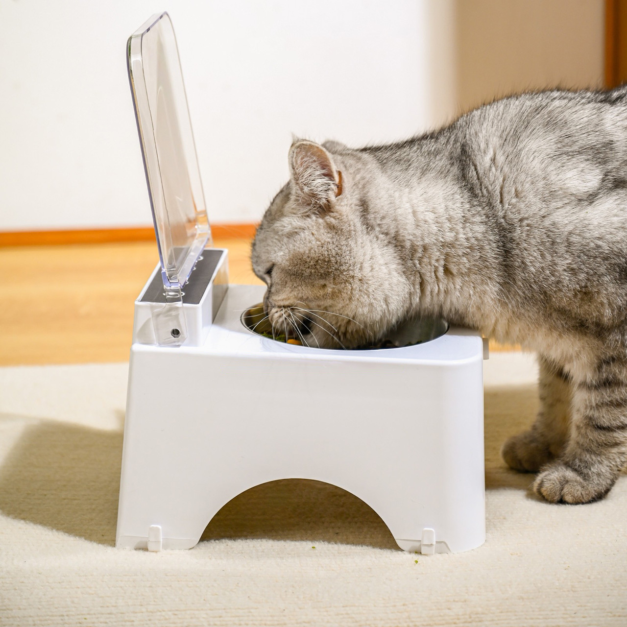 Ця котяча миска використовує технологію інфрачервоного датчика. Коли кіт підходить, кришка миски відкривається; коли кіт йде, кришка закривається!
